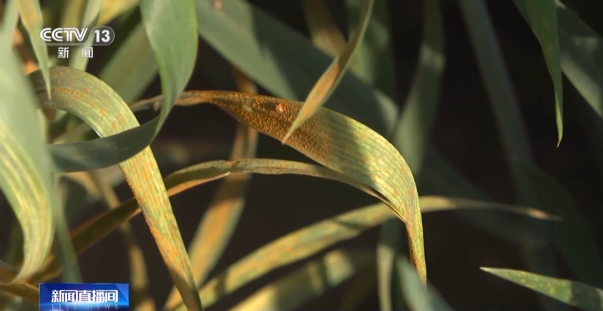 康振生:叶片上发生的孢子堆,它能够随风进行远距离,几十公里、上百公里、上千公里,它的、它的侵染能够影响到我们国度整个小麦出产区的粮食平安。