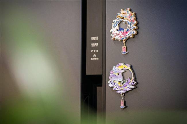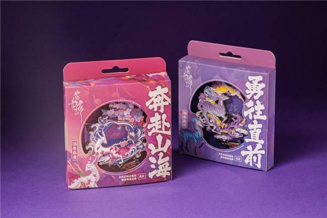 豫园灯会的灯组不只变身手提灯笼,还衍生出美轮美奂的冰箱贴。怯往曲前的鹿蜀,“佩之宜子孙”,寄意朝气丰满,万事畅旺;自由逛走的乘黄,随六合四时,“乘之寿二千岁”,寄意长命健康,自由。两款冰箱贴全体制型流线丰硕,韵律流利,极具粉饰美感,同时还插手了AR互动玩儿法,更添趣味。