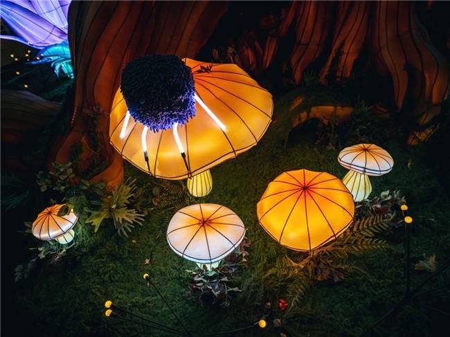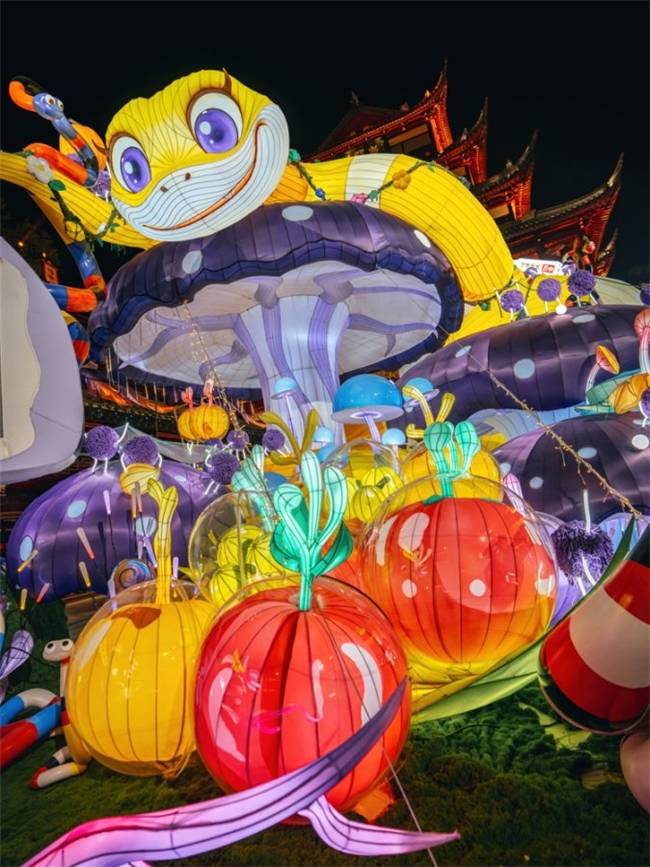 “山海奇奥朝气勃发,夸姣不负韶华”核心广场呈现“六合人和,金蛇献瑞”的热闹森林气象,金色灵蛇盘绕正在蘑菇森林中,灵蛇的身躯仿佛成了一道流动的彩带。除了庞大的金色灵蛇,它身上细微的菌人和其他组别小蛇同样值得关心,小菌人出自《山海经》!“有,名菌人。(菌通郡)古训载!海人生若菌,若菌生。”小菌人如小蘑菇般体态,虽朝生暮死,但有着乐天从容的性格,表达对夸姣糊口有逃求,它们喜爱收集森林中标致的石头、果实来点缀灵蛇。小蛇们分实组、打扮组、氛围组,为金色灵蛇富丽上妆,取小菌人们一同奏响“彩逐灵蛇转”的森林交响乐。豫园股份首席文化官、豫园华灯公司董事长陈佳说,“山海奇豫记·森林篇”更正在意当下人们的审美和时代情感的共振,看护,找寻本人存正在的价值取意义。