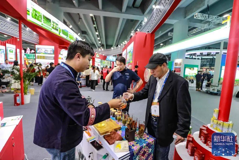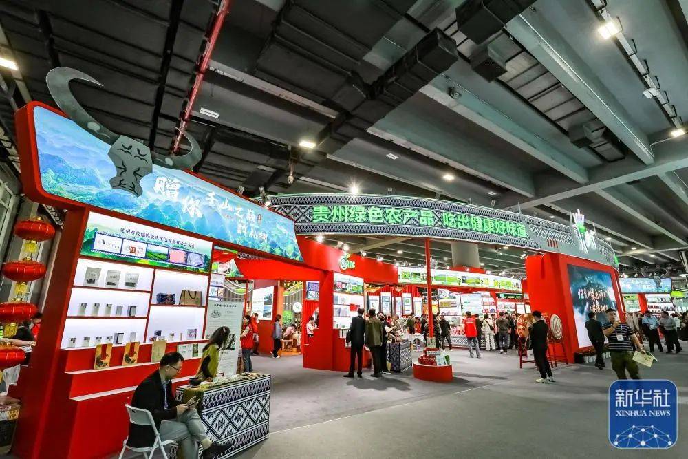 这是28日拍摄的第二十一届农交会贵州展区现场。进一步提拔贵州品牌农产物正在大湾区市场的出名度和佳誉度。品一杯,本次农交会期间,加大区域公用品牌授权力用,本年农交会初次走进粤港澳大湾区。